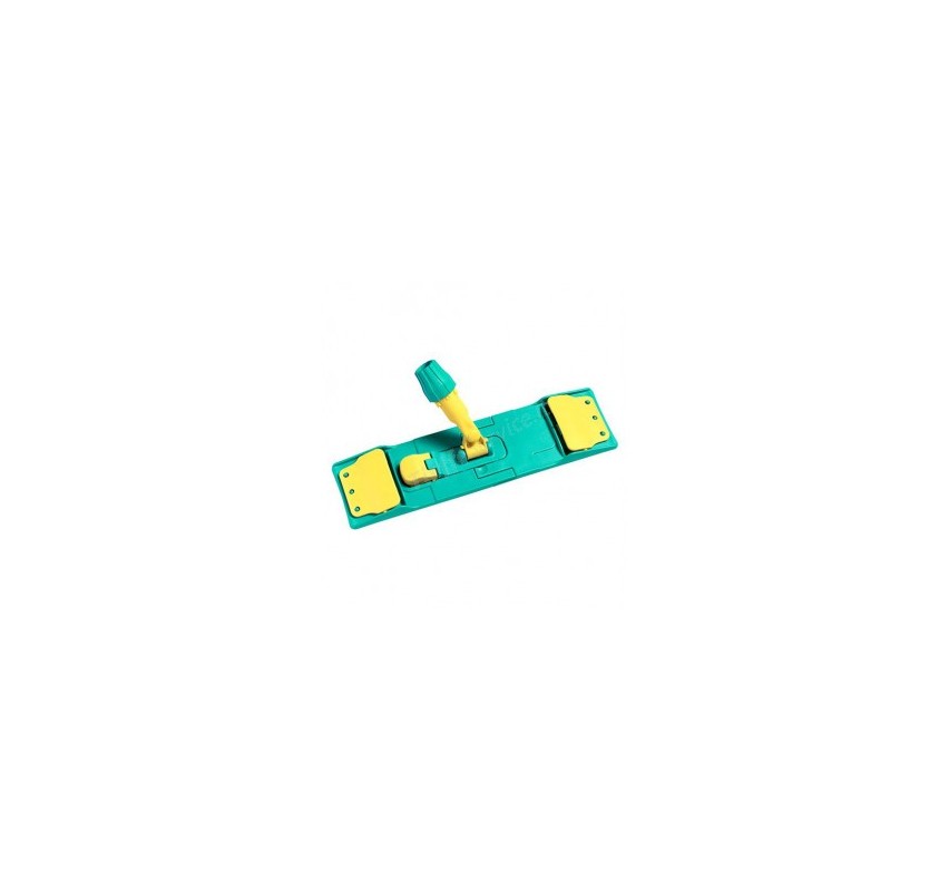 Inoxydable et très léger. Pour le lavage des sols avec franges à languettes. Nettoyage en position ergonomique : appuyez avec le pied sur le bouton jaune pour déverouiller le support. L'articulation à 360°C permet à l'opérateur de nettoyer les coins difficiles et sous les meubles. Anneau universel qui permet de l'utiliser avec manches de Ø 18-23 mm.