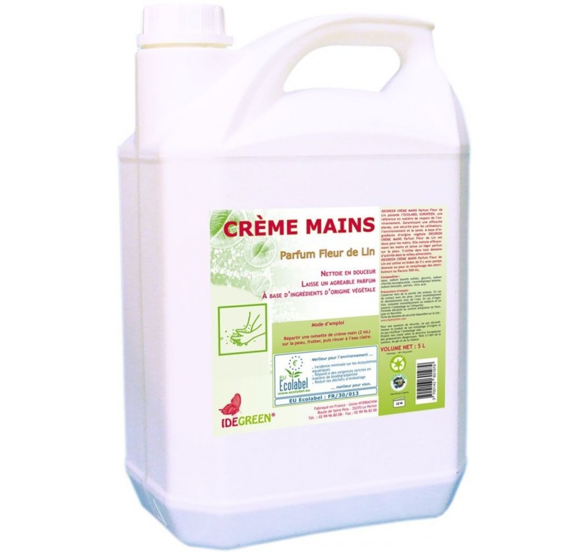 Recharges crème mains Idegreen, parfum fleurs de lin 5L