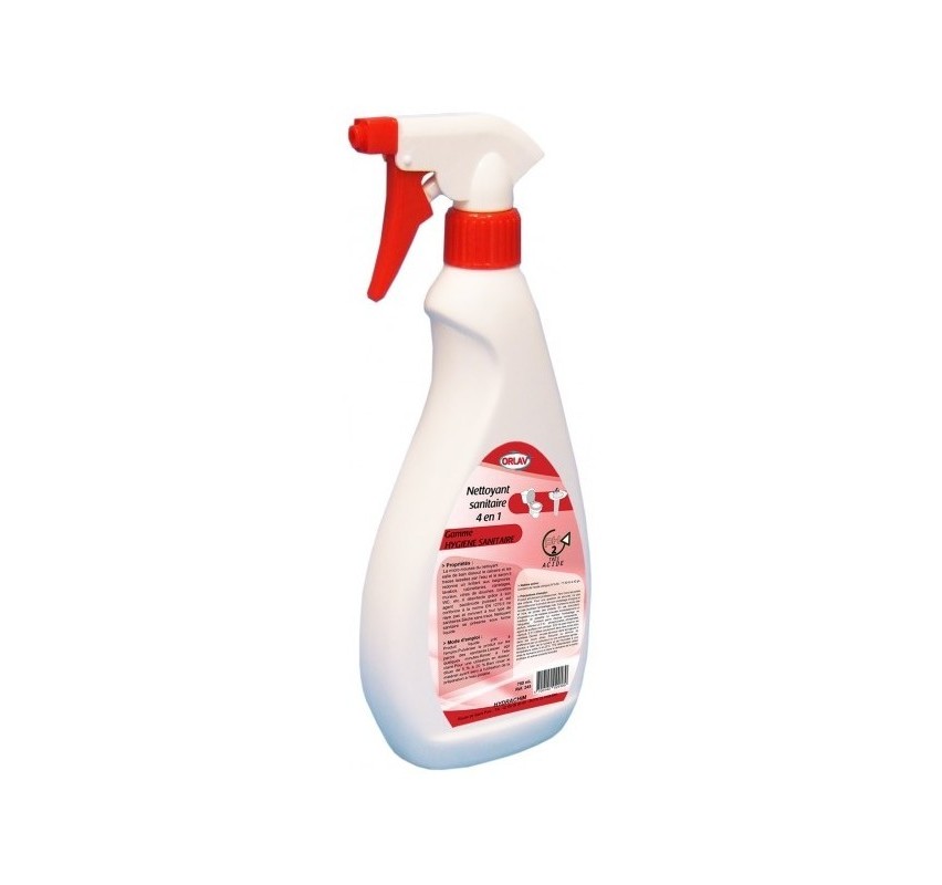 Gel 4 en 1 pour le nettoyage, le détartrage, la désinfection et la désodorisation des sanitaires. Dissout le calcaire et les traces laissées par l'eau et le savon. Redonne brillance aux baignoires, lavabos, robinetteris, carrelages. Sèche sans laisser de traces et parfume agréablement. Bactéricide selon la norme EN 1276. Dosage : Prêt à l'emploi, s'applique directement sur les parois des sanitaires.