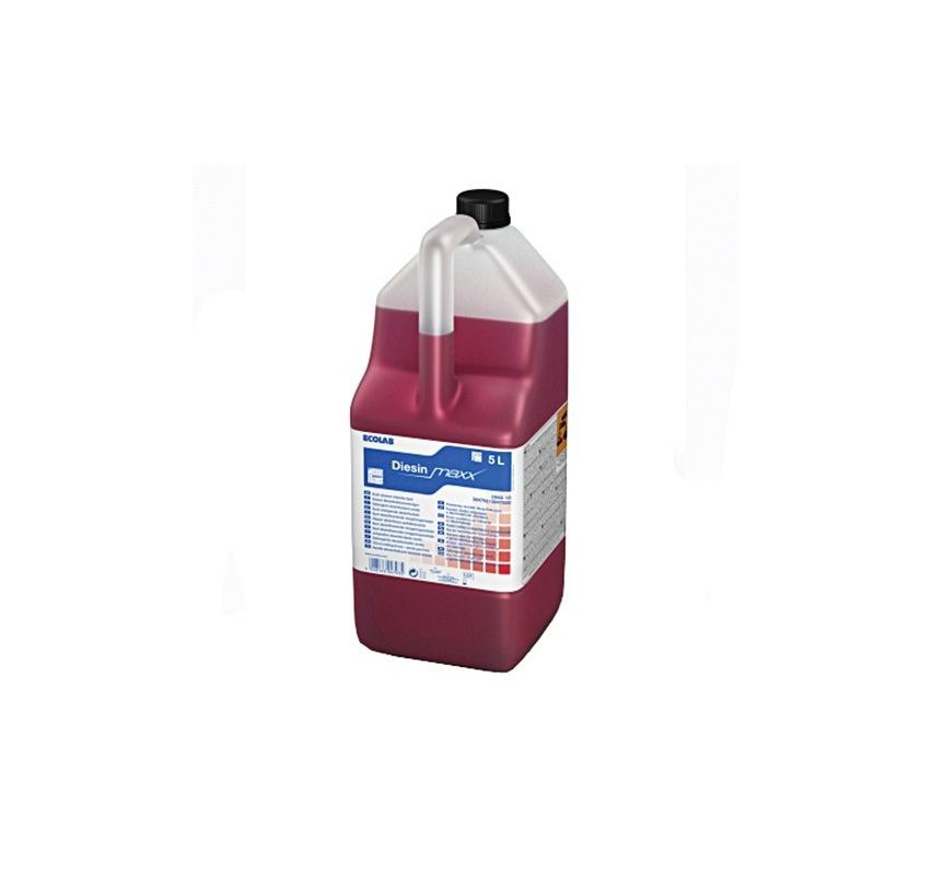 Diesin Maxx est un détergent désinfectant acide puissant, usage préventif + curatif. Entretien quotidien et remise en état de toutes les surfaces résistant à l'eau et aux acides doux. Action désinfectante selon les normes EN 1276, EN 1650, EN 13697. Orientation développement durable (acide lactique et couleur rouge). Nettoie, détartre et désinfecte en une seule opération.